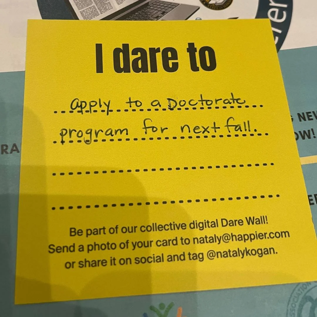Then Nataly invites every audience member to email her their dare — and a week later, she follows up to see if they've put it into action.