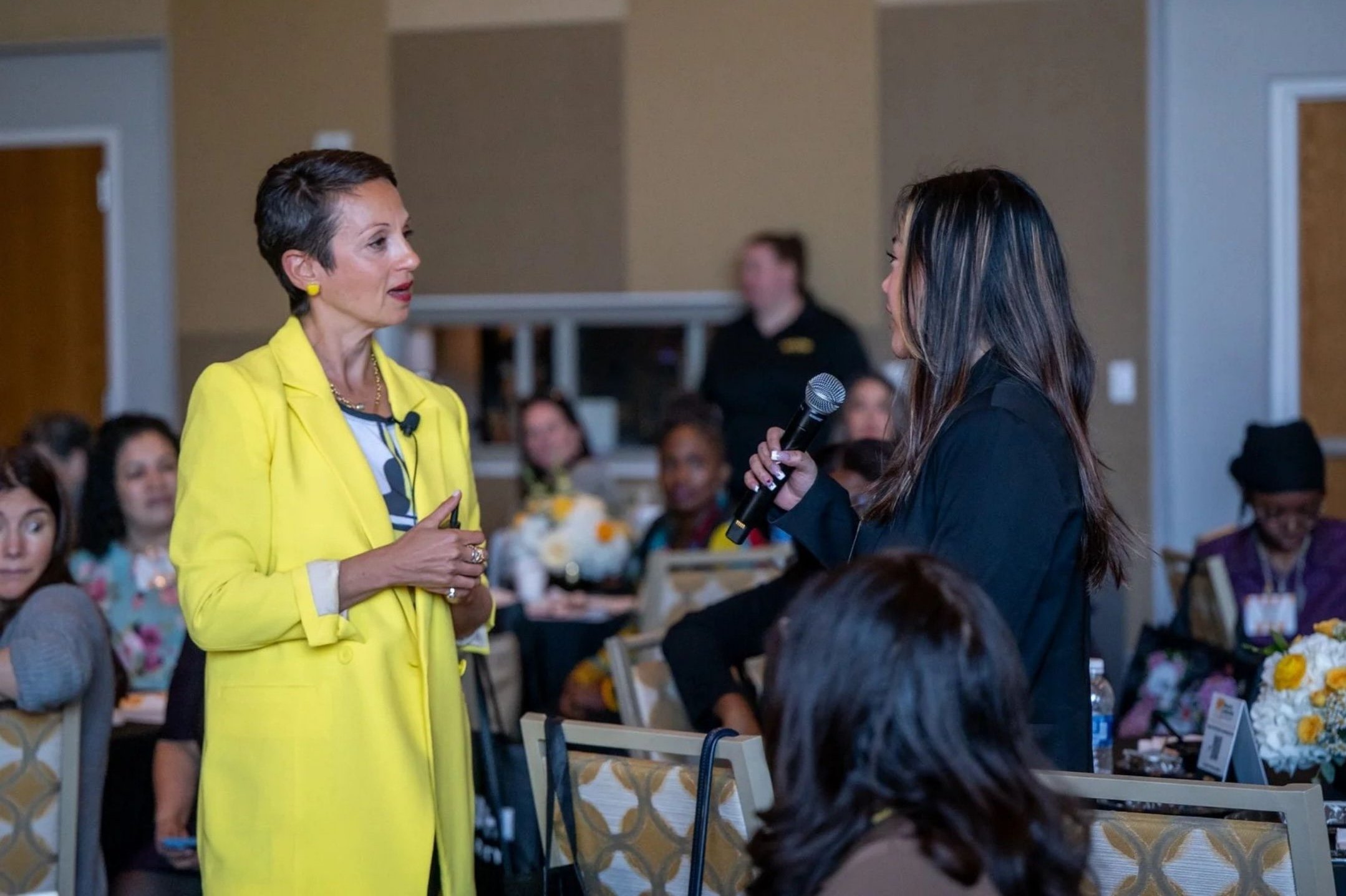 Yes, she always wears yellow on stage. She LOVES bold colors and they match her vibrant energy. Your audience will feel that energy the moment she walks out.